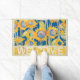 É um jardim de girassóis amarelos em um fundo azul vibrante que decora esta esteira bem-vinda. Características deste design um jardim de girassóis amarelos em um fundo azul. Está abaixo a boa vinda da palavra que pode ser deixada como é ou ser mudada a um nome monogrammed. Projetado pelo ©Tim mundialmente famoso Coffey do artista.
