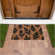 Uma porta quente e natural com um fundo bege macio e silhuetas de folhas pretas, oferecendo um toque de elegância inspirada na natureza para a sua porta.