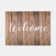 Bem-vinda à porta com um fundo de madeira rústico para a sua decoração de varanda no estilo de fazenda moderno.