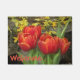Esta porta de boas-vindas contém lindas tulipas vermelhas orangulares, um lembrete de primavera e renovação!