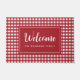 Adicione um estilo festivo de na moda à sua entrada com esta porta de formato de xadrez de búfalos rústicos em cores brancas vermelhas. Design apresenta "Bem-vindo" na tipografia de estilo na moda elegante. Personalize com seu nome de família ou citação favorita. Aproveite!