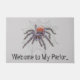 Uma porta clássica de boas-vindas da festa do Dia das Bruxas divertida, com uma aranha gigantesca e legal caneta e ilustração de tinta. Feliz Dia das Bruxas!