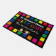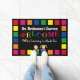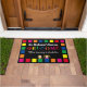 Um tapete de "boas-vindas" divertido e colorido para saudar os visitantes com duas linhas de personalização. Faria um presente de excelente!