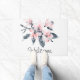 Uma porta bem-vinda com uma bonito ilustração aquosa de flores cor-de-rosa com folhas de cinza num caule de solteiro. Um design botânico elegante moderno.