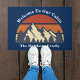 Este maravilhoso pôr do sol sobre montanhas rochosas e árvores florestais na natureza faz uma imagem excelente para uma porta de boas-vindas para o seu acampamento de verão, parque RV, ou cabana de madeira na floresta. Basta adicionar seu próprio texto personalizado para receber campers ou convidados de cama e café da manhã na sua casa. Personalize com sua própria saudação ou nome comercial.