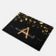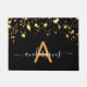 Um fundo preto chic com estrelas de ouro sujo. Personalize e adicione seu nome de família e sua primeira letra. Letras brancas e ouros coloridas. Glamoroso e moderno para sua casa. O nome da família é escrito com um script de estilo tendencioso com letras de mão com baloiços. Para manter as hastes, exclua apenas o nome da amostra, deixe os espaços ou emoji na frente e depois do nome.
