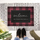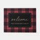 Adicione um toque no estilo da fazenda à sua entrada com esta xadrez de búfalos rústica com formato de porta em vermelho e preto clássico de morango. "Bem-vindo" aparece no centro em letra casual de script manuscrito; personalize com seu nome de família embaixo.
