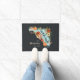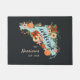 Prepare o seu estado natal ou o local de férias favorito com este bonitinho tapete da Flórida com um mapa da silhueta do estado adornada com flores tropicais coloridas, folhagem verde e laranjas suculentas. "Bem-vindo" está inscrito dentro no script escrito à mão. Personalize com seu nome de família e ano estabelecido.