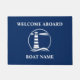 Seu nome de barco personalizado e saudação com um farol náutico clássico em uma porta personalizada.