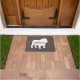 Silhueta de Bulldog Inglês com texto personalizado. O tapete de boas-vindas do legal amante do cão. Saudações aos seus convidados com Bem-vindo, nome da sua família, outro texto ou eliminação do texto de exemplo para um design simples sem palavras. Este design divertido está disponível em várias cores e em dois tamanhos. Faz um presente original para quem ama Bulldog.