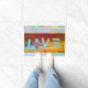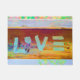 Doormat boémio do boho do hippie do amor. Oxidação verde-clara, cor-de-rosa, amarela, cores de cobre. Palavra "AMOR" pintado na madeira. Saia no estilo com este artigo home colorido, chique, na moda, legal, moderno da decoração.