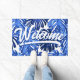 Sua esposa vai adorar este tapete de porta tropical de Jessica Amber. Este tapete de borracha personalizável apresenta grandes folhas da selva em azul real, sobre fundo branco. Você pode mudar a imagem da folha para sua própria foto. Por cima está a palavra "Bem-vindo" - que também se pode mudar, juntamente com o sublinhado - numa fonte de caligrafia branca divertida. Um excelente de decoração para sua casa de praia! 🌙 Para obter designs de praia mais exóticos, visite minha loja Zazzle.com/DriftwoodAndDreams ⭐ Para pedidos personalizados, envie-me uma mensagem no Zazzle