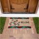 Personalize este Único "Um dos Tipos" do Sudoeste Kokopelli Doormat! Ele apresenta um Três Kokopelli tocando flauta e dançando sob o sol em um fundo de arenito de Tan... cercado por uma borda sudoeste em Turquesa, Laranja e Negro! Esta é uma Design de Arte Original do Artista Kerry Miller.