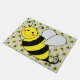 Um amarelo grande e um preto bumble a abelha com um teste padrão da abelha com alguns flores, corações, redemoinhos, twirls, e fugas da abelha. A ilustração grande da abelha pode resized e movido.
