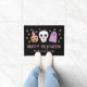 Este tapete super divertido da porta do Dia das Bruxas é perfeito para a temporada de outono e para dar as boas-vindas a truques ou tratadores! Apresenta um crânio puxado pela mão, fantasma, abóbora-de-jack-lanterno (vestindo um chapéu de bruxa), e estrelas, juntamente com a tipografia moderna, lendo, "Feliz Halloween!" Um modelo de texto é incluído para facilitar a personalização. O esquema de cores inclui rosa pastel, roxo e pêssego. *Trabalho de arte de Orabella Impressões.
