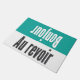 Olá! e adeus na esteira de porta francesa. Revoir assim de Bonjour e de Au ao mesmo tempo!