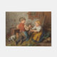 Este design apresenta uma pintura do artista alemão Felix Schleswig (1833-1910). Mostra duas crianças pequenas, um menino e uma menina, brincando alegremente com seus coelhos de estimação. As crianças estão pegando um coelho e fazendo cócegas nele. Há outros dois coelhos no chão, perto do galinheiro, comendo feno. É uma bela representação da infância e das alegrias de ter animais de estimação.