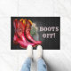 Esta porta de formato ocidental apresenta um par de botas de cowboy e uma planta de cacto com as palavras "Boots off!" Este texto é editável para que você possa colocar sua própria mensagem aqui e também possa alterar o estilo, o tamanho e a cor da fonte! Crédito da foto: Stephanie Harvey, 2017. Aproveite seu novo e editável cowboy ocidental boots off Doormat!