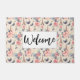 Uma porta de boas-vindas com um padrão elegante. Rosas rosa, borboletas de cinza azul e uma torre Eiffel. Um padrão temático francês.