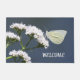 Uma bela foto de uma borboleta branca que repousa em flores brancas, é mostrada neste tapete da porta. Com uma mensagem de "Bem-vindo", este tapete de porta é uma forma excelente de saudar os visitantes. O suporte à ação de látex resistente permite uma aderência sem deslizamento. Este tapete resiste ao apagão, ao molde e ao mofo e é de 24" w x 36" l, decorado nos EUA.