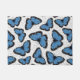 Design de padrão sem costura com borboletas morfo azuis em flores de hydrangea fundo do trabalho linhado.
