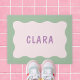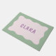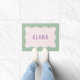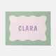 Um tapete bonito e colorido com design de borda ondulada e texto personalizável.