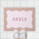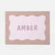 Um tapete bonito e colorido com design de borda ondulada e texto personalizável.