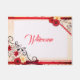 Bem-vindos aos seus convidados com um tapete ao ar livre feito por medida. Porta Decorativa Ornamental Negra Rosa vermelha Elegante da Borda da Crimson. As portas de boas-vindas criam um confortável sentimento de casa. Personalize com um nome, citação de mensagem ou qualquer coisa que você desejar.
