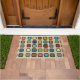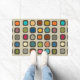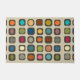 Um padrão de abstrato de arte do estilo retro dos anos 50 com botões brilhantes e coloridos dentro de quadrados.