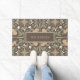 Wanting a cute orange theme for your home decor? Enhance your entrance by adding the Brown Orange Blossoms Pattern and Custom Text Doormat. Personalize it with your family's name or other text. The pattern has a muted color palette. The green and orange provide a soft appearance against the brown background. The leaves, flowers, and oranges are outlined in a khaki shade.