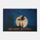 Bem-vindos aos seus convidados e truques ou tratadores com um tapete de porta do Dia das Bruxas! Uma bruxa voando sobre sua vassoura é iluminada por uma enorme lua de cheio. O céu escuro tem algumas estrelas num horizonte silenciado. Por mais diversão, alguns morcegos estão em voo. O texto laranja "Bruxas de Boas-vindas" está definido abaixo da imagem com a fonte de tendência laranja.