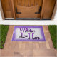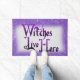 Este tapete de porta de boas-vindas, estilo Gótico, apresenta uma cor de fundo de cinza macia com uma borda de gradiente de estilo brilhante roxa. O brilho roxo é mais denso perto das bordas e desaparece levemente em direção ao meio. A saudação "Welcome Witches Live Here" é impressa em um estilo assustador, preto e roxo, com caracteres de gradação. Este tapete de porta faz o cúmplice perfeito do Halloween ao ar livre, mas é excelente o ano todo.