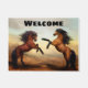 Esta esteira de porta da qualidade deleitará todo o amante do cavalo com seu design que caracteriza uma elevação de dois garanhões. O texto opcional é personalizado facilmente.