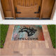 Personalize esta Mata de Portas de Elk Touro Única "Um dos Tipos"! Ele apresenta uma Silhueta Negra Negra de Elk Touro Maçosa...num fundo Turquesa e Cobre! Design Original Do Artista Kerry Miller.