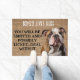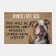 Portão personalizado do Bulldog com uma citação engraçada. "Você será cheirado e possivelmente lambido...Lidar com isso." Ele tem uma borracha não escorregadia que não trava nem enfiava, resiste a desaparecer, molde e mofo e pode ser facilmente limpo com uma mangueira. Seja criativo - clique em PERSONALIZAR para adicionar/remover/alterar texto, alterar a imagem, redimensionar a imagem, alterar cores, fundo ou qualquer outra coisa que a ferramenta de personalização permita!
