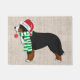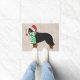 Feriado Festivo de Natal Personalizado Cão de Montanha Bernese vestido com chapéu santa e cachecol verde e branco segurando enfeites de natal vermelha em sua boca. Uma bela porta de natal para amantes de berner!