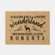 Bonito aspecto de uma casa de fazenda de inverno - arroto elegante - texto clássico "andando numa terra maravilhosa de inverno" com um cervo, galhos, flocos de neve e o nome da sua família