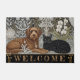 Boas-vindas Doormat com trabalho de arte de colheita de Cachorro e Gato Negro cercado por um belo palito, orquídeas brancas, grama pampas e brancos exóticos de inverno colocados em ouro de Art Nuovo seguindo no estilo de William Morris. Um presente fabuloso para donos de cães/gatos. Personalize facilmente o texto de boas-vindas. Para um ajuste de versão menor (redimensionado), consulte na minha loja.