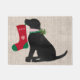 Laboratório preto de pré-filhotes festivos, segurando estoque de natal na boca. Portão decorativo de feriado para amantes de cães de laboratório! Os desenhos do Preppy Dog © EMR. Designs.