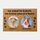 Apresentando o tapete de porta perfeito para todos os amantes de cachorro lá fora! Este tapete moderno e na moda é a maneira ideal de receber convidados em sua casa com um toque de humor e beleza. O material de coral falso é durável e amigo do ambiente, enquanto as pegadas e a frase brincalhona "Não precisa bater, sabemos que você está aqui... os animais de estimação" trarão um sorriso para qualquer um. Esta porta apresenta espaço para duas fotos de seus queridos animais de estimação - sejam eles cães, gatos ou qualquer outro amigo peludo - junto com seus nomes personalizados. Este tapete de porta não é apenas um excelente adicional à sua própria casa, mas também representa um presente perfeito para mães de cães e pais de cães. É a maneira perfeita de mostrar seu amor por seus amigos peludos e fazer uma declaração na entrada de sua casa. Seja colocado na sua varanda ou na sua porta de entrada, este tapete certamente vai impressionar e dar boas-vindas. Então por que não tratar a si mesmo ou a um companheiro de cachorro amante a este dom único e adorável? É a maneira perfeita de iluminar qualquer casa e mostrar o seu amor pelos nossos amigos de quatro patas.