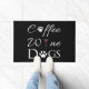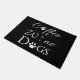 A Matriz de Portas dos Cães de Café é é perfeita para aqueles que amam café, vinho e cachorros. Design de porta de tapete apresenta um texto rico para café com um adorno de café para a letra "o", vinho que contém um copo de vinho tinto para a letra "i", e cães com um embelezamento de pata em substituição do "o". Itens de presentes adicionais disponíveis com este design também.