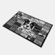 Este design combina elegância humorística com um toque de charme de pop! O cão feroz no centro é um verdadeiro apanhador de olhos e transmite uma mensagem clara com as engraçadas bolhas de fala "Calçados sujos?" e "Como ousa!". Elementos gráficos dispostos simetricamente no estilo de grade bento - como calçados, padrões dinâmicos e um espaço para texto personalizável, como 'Bem-vindo ao 'nome da família' - fazem deste design uma obra de arte única. A estética negra e branca cria um aspecto eterno e moderno que melhorará qualquer área de entrada. Perfeito para famílias, amantes de os animais ou fãs design que querem combinar humor e estilo.