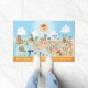 Um espetacular mapa de cartoons do sul da Califórnia - mostrando Los Angeles, Anaheim, Long Beach, San Diego e muitas outras cidades além da maioria das praias. Esta ilustração balbuciosa é cheio de diversão - uma surfista pendura dez vezes enquanto uma sereia salta sobre uma rocha, uma baleia assassina salta da água e um touro se esmaga em um caça-touro, tudo sob o sol quente da Califórnia brilhando acima de tudo.