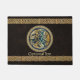 O Celtic Wolf Knotwork Triad DesignRichly entrelaçou nós celtas criando a forma de um lobo e cercado por uma coroa de nós, por sua vez enquadrados em padrões mais complexos. Um excelente de cultura, história e patrimônio, sobre um fundo de couro marrom-escuro (chocolate) simulou couro velho.