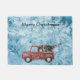 caminhão de vintage vermelho com árvore de natal em um fundo azul floco de neve Adicione sua própria mensagem