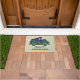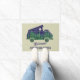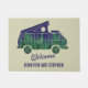 Esta porta está pronta para ser personalizada com seus nomes. Este tapete de boas-vindas ilustra um fã de campismo com uma tenda de pup no telhado e é ilustrado para parecer uma noite iluminada pela lua na floresta com uma lua de cheio num céu de indigo estrelado brilhando sobre um pomar de árvores verdes. A mensagem "Welcome" (Bem-vindo) é exibida abaixo, em caracteres de script, com seus nomes, no texto impressão abaixo.