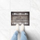O doormat de acampamento rústico bonito, personalizado da decoração do rv para rvers, os casais aposentados, e os campistas afligidos, doormat de madeira rústico do olhar lêem "campistas felizes" em letras de vista escritas à mão com um modelo do texto para adicionar o nome de família abaixo na rotulação lunática. Com uma beira bonito, branca dos desenhos animados na parte superior e parte inferior do motorhome RVs e dos pinheiros. Contra um fundo dos conselhos de madeira escurecidos, rústicos, afligidos. O excelente acopla o presente da aposentadoria, demasiado. Olharia direito em casa na frente de um rv ou de uma cabana rústica de madeira acolhedor.