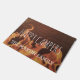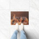 O presente bonito para rvers, viajantes aposentados, caminhantes, campistas, e amantes de natureza é este o doormat de acampamento personalizado que lê campistas felizes com um modelo para adicionar o nome de família. Contra uma foto do fundo de uma fogueira e de uma madeira ardentes. Grande presente da aposentadoria, demasiado. Seja direito em casa na frente de um rv ou de uma cabana rústica de madeira acolhedor.