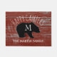 O presente home de madeira rústico bonito, personalizado da decoração para rvers, os viajantes aposentados, os caminhantes, os campistas, o urso ou os amantes dos animais, e os tipos outdoorsy são este o doormat de acampamento personalizado que lê campistas felizes em rotulação curvada olhar escrita à mão, rabiscada acima de uma silhueta do urso preto com uma inicial monogrammed no centro. Adicione o nome de família na parte inferior na pia batismal lunática. Contra um fundo do celeiro rústico velho a madeira pintou a obscuridade tradicional - vermelho. Grande presente da aposentadoria, demasiado. Seja direito em casa na frente de um rv, de uma casa de verão ou de uma cabana rústica de madeira rústica nas madeiras.