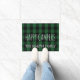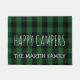 O presente home rústico da decoração da xadrez verde na moda, mas clássico para rvers, viajantes aposentados, campistas, e amantes de natureza é este doormat personalizado que lê campistas felizes com um modelo para adicionar o nome de família abaixo nas letras brancas. Contra um fundo popular do teste padrão preto e verde, acolhedor da xadrez do búfalo ou da xadrez ou de verificações igualmente chamadas do lenhador. Presente original da aposentadoria, demasiado. Seja direito em casa na frente de um rv ou de uma cabana rústica de madeira acolhedor e aperfeiçoe para a época natalícia do inverno.